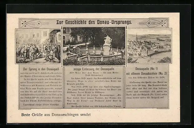 AK Donaueschingen, Donauquelle mit historischen Ansichten