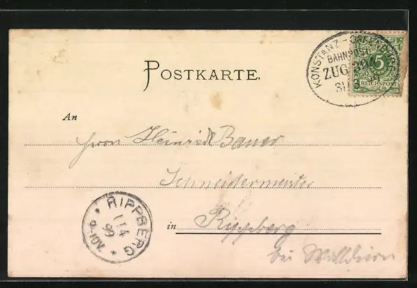 alte Ansichtskarte, gelaufen 1899, guter Zustand