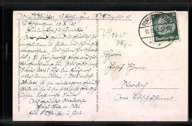 alte Ansichtskarte, gelaufen 1933, Eckknicke oben, guter Zustand