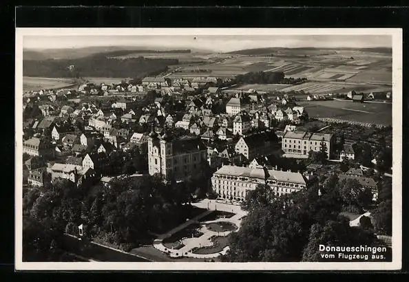 AK Donaueschingen, Ortsansicht vom Flugzeug aus gesehen
