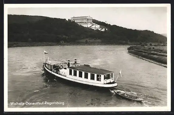 AK Donaustauf-Regensburg, Walhalla mit Dampfer