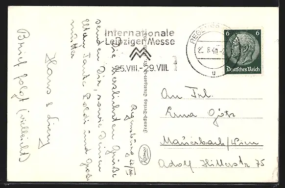 alte Ansichtskarte, gelaufen 1940, Eckknick li. oben, minimaler Einriss li. oben, guter Zustand