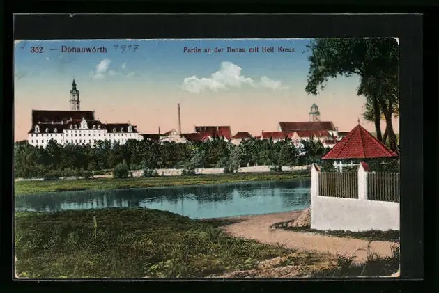 AK Donauwörth, Donaupartie mit Heil. Kreuz-Kirche