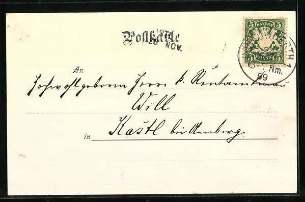 alte Ansichtskarte, gelaufen 1899, Stempelspur, guter Zustand