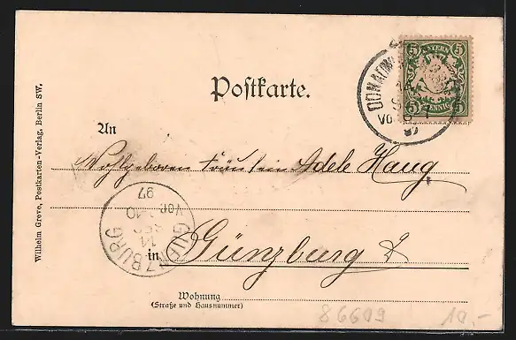 alte Ansichtskarte, gelaufen 1897, guter Zustand