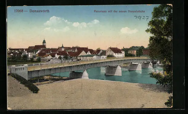 AK Donauwörth, Panorama mit der neuen Donaubrücke