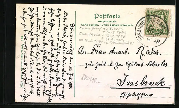 alte Ansichtskarte, gelaufen 1910, guter Zustand
