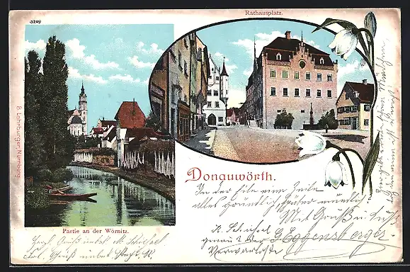 AK Donauwörth, Partie an der Wörnitz, Rathausplatz