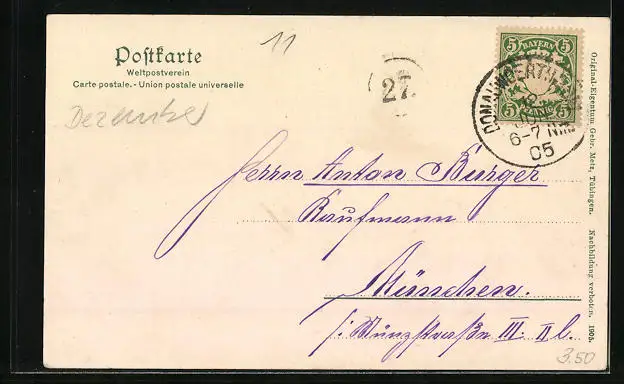 alte Ansichtskarte, gelaufen 1905, guter Zustand