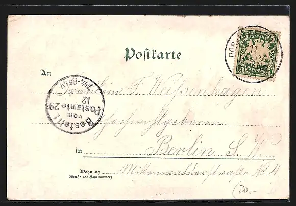 alte Ansichtskarte, gelaufen 1901, Eckknicke oben, guter Zustand