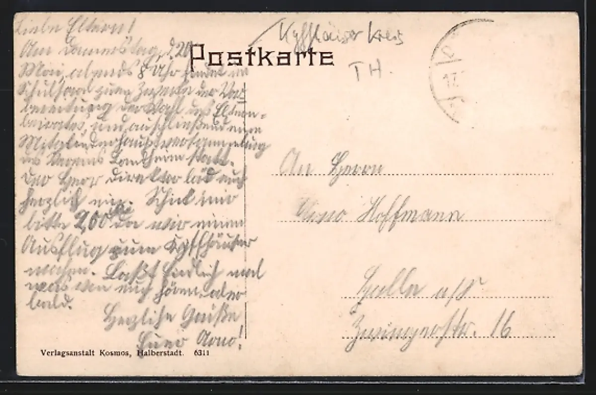 alte Ansichtskarte, gelaufen, Briefmarke entfernt, rückseitig Oberflächenschaden, Abriebspur li. oben, Bugspur oben mittig