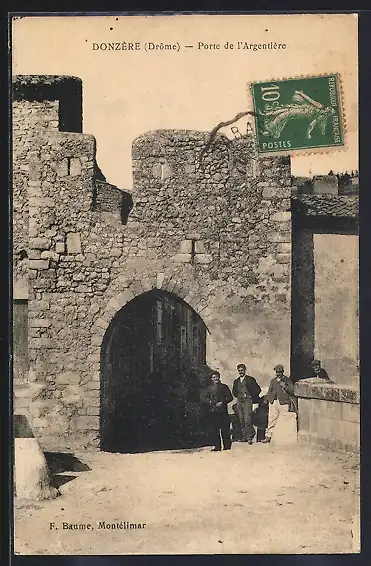 AK Donzère /Drôme, Porte de l`Argentière avec des hommes posant devant l`entrée