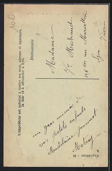 Personenbezogene Daten auf der Rückseite der Karte wurden durch blauen Textmarker unkenntlich gemacht. Die blauen Stellen sind auf die Vorderseite durchgeweicht und wirken sich negativ auf das Postkartenfoto aus