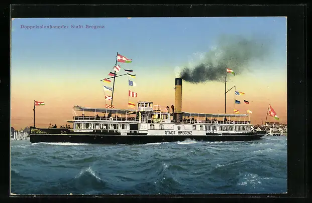 AK Doppelsalondampfer Stadt Bregenz in Flaggengala