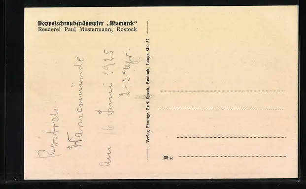 AK Doppelschraubendampfer Bismarck in Flaggengala