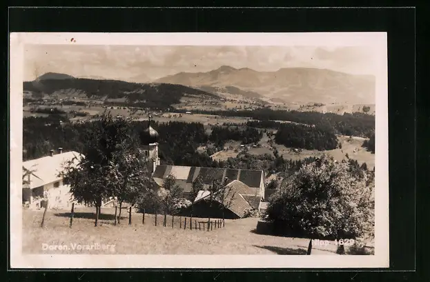 AK Doren, Ortsansicht mit Kirche und Fernblick