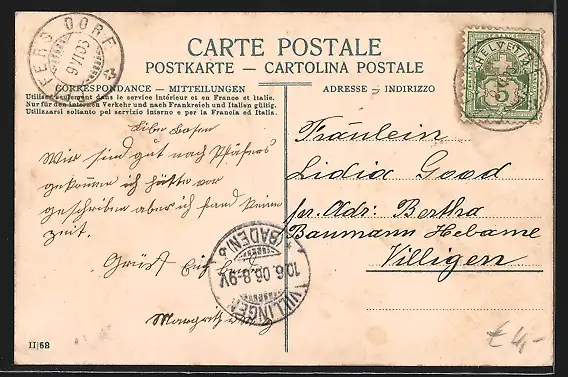 alte Ansichtskarte, gelaufen 1906, Eckknick unten re., guter Zustand