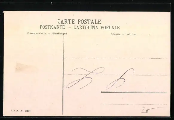 Personenbezogene Daten auf der Rückseite der Karte wurden durch blauen Textmarker unkenntlich gemacht. Die blauen Stellen sind auf die Vorderseite durchgeweicht und wirken sich negativ auf das Postkartenfoto aus