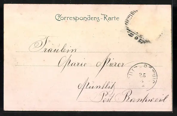 alte Ansichtskarte, gelaufen, Briefmarke entfernt, guter Zustand