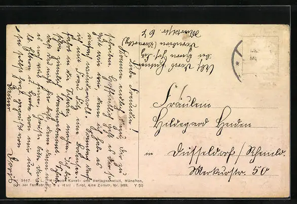 alte Ansichtskarte, gelaufen, Briefmarke entfernt, rückseitig Oberflächenschaden, guter Zustand