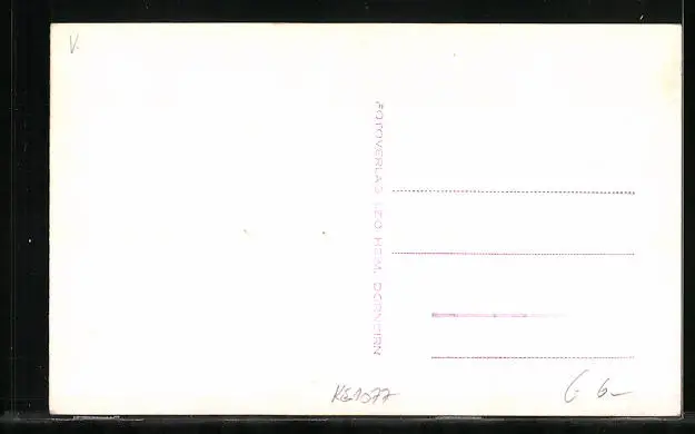 Personenbezogene Daten auf der Rückseite der Karte wurden durch blauen Textmarker unkenntlich gemacht. Die blauen Stellen sind auf die Vorderseite durchgeweicht und wirken sich negativ auf das Postkartenfoto aus