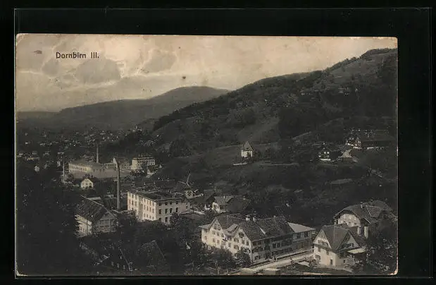 AK Dornbirn, Teilansicht mit Bergpanorama aus der Vogelschau