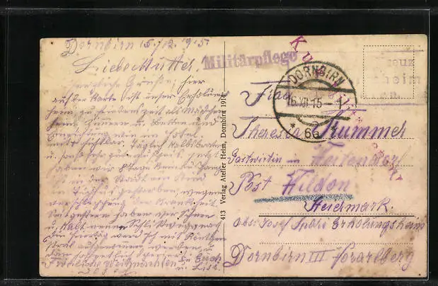 gelaufen als Feldpost 1915, guter Zustand