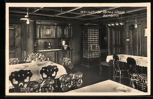 AK Dornbirn, Weinstube Rotes Haus mit Ofen