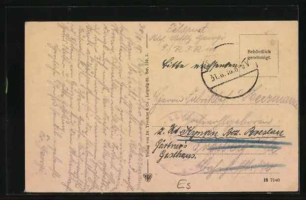 alte Ansichtskarte, gelaufen 1918, Eckknick li. unten, guter Zustand