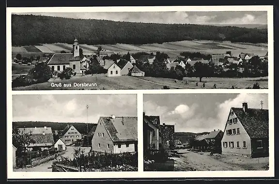AK Dorsbrunn, Panorama mit Kirche, Strassenpartie