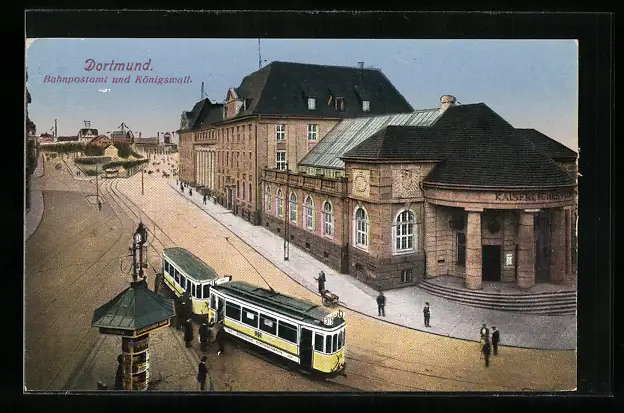 AK Dortmund, Bahnpostamt und Königswall, Strassenbahn