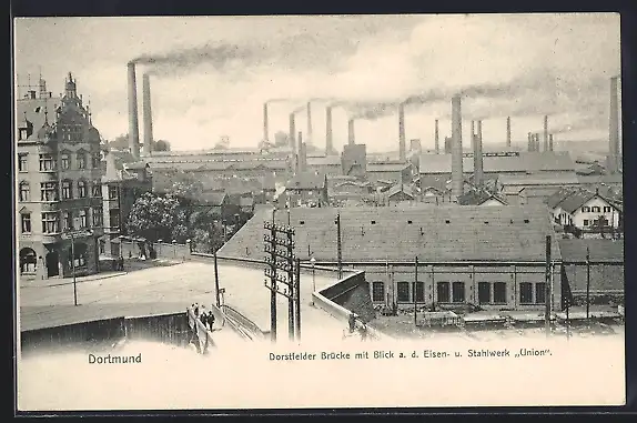 AK Dortmund, Dorstfelder Brücke mit Eisenwerk Union