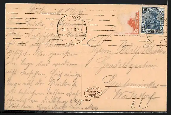 alte Ansichtskarte, gelaufen, Briefmarke entfernt, guter Zustand
