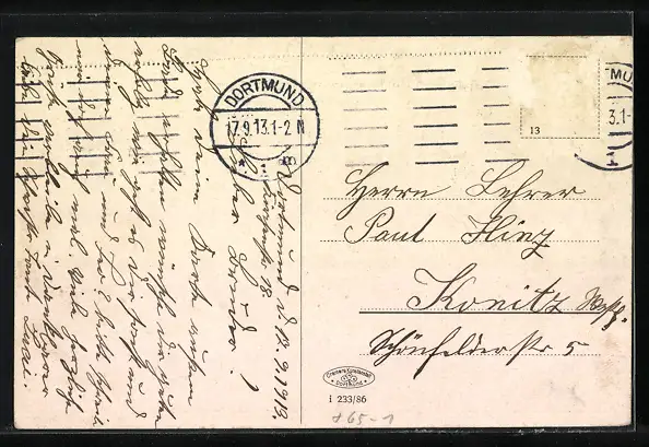 alte Ansichtskarte, gelaufen 1913, Briefmarke entfernt, Stempelspur, Eckknick links unten, guter Zustand