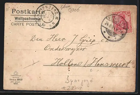 gelaufen 1904, Ecken bestoßen, guter Zustand