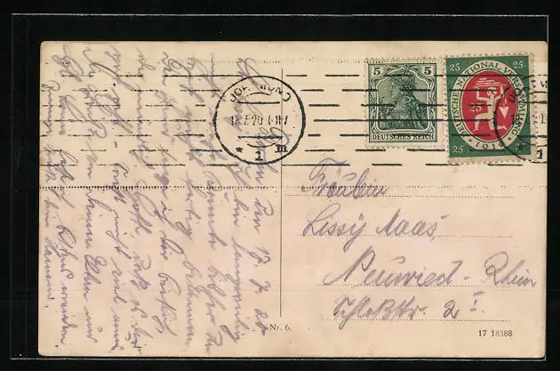 alte Ansichtskarte, gelaufen 1920, Stempelspur, guter Zustand
