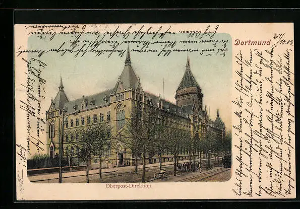 AK Dortmund, Oberpost-Direktion mit Strassenbahn