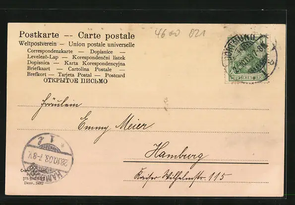 alte Ansichtskarte, gelaufen 1903, guter Zustand