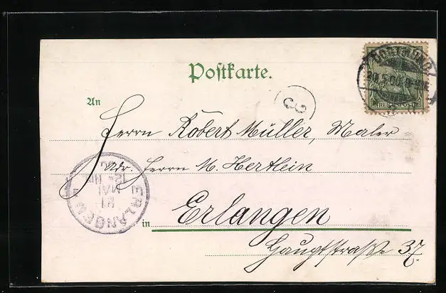 alte Ansichtskarte, gelaufen 1900, Kante beschnitten re., guter Zustand
