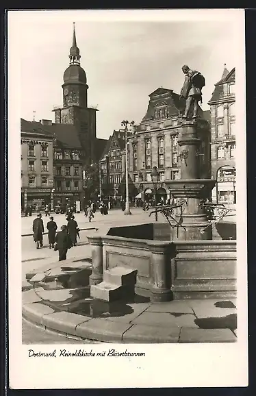 AK Dortmund, Reinoldikirche mit Bläserbrunnen