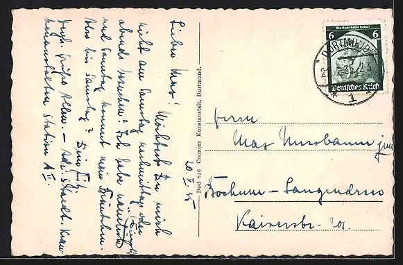 alte Ansichtskarte, gelaufen 1935, Stempelspur, guter Zustand