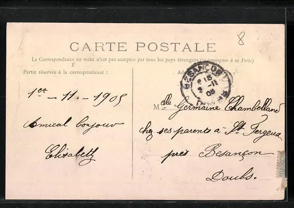 alte Ansichtskarte, gelaufen 1905, Stempelspur, Eckknick oben re., guter Zustand