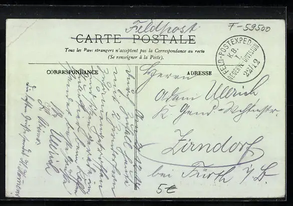 alte Ansichtskarte, gelaufen 1914 als Feldpost, Eckknick re. oben, guter Zustand