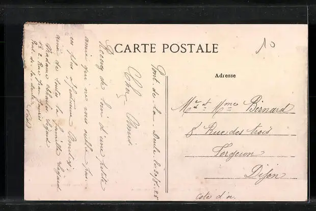 Personenbezogene Daten auf der Rückseite der Karte wurden durch blauen Textmarker unkenntlich gemacht. Die blauen Stellen sind auf die Vorderseite durchgeweicht und wirken sich negativ auf das Postkartenfoto aus
