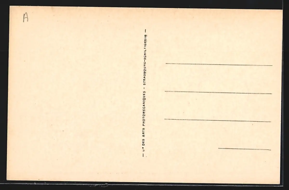 Personenbezogene Daten auf der Rückseite der Karte wurden durch blauen Textmarker unkenntlich gemacht. Die blauen Stellen sind auf die Vorderseite durchgeweicht und wirken sich negativ auf das Postkartenfoto aus