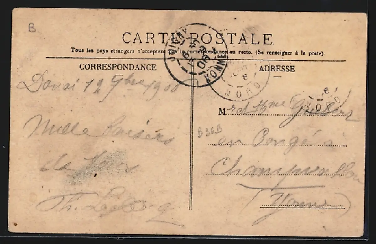 alte Ansichtskarte, gelaufen 1906, vorderseitig Klebe- und Papierreste, Abriebspur li. oben, guter Zustand
