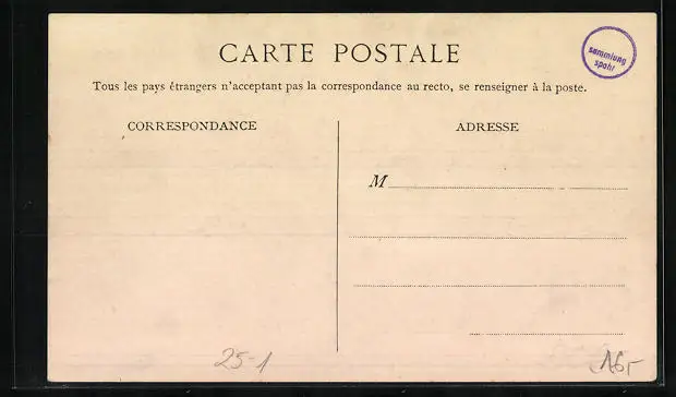 Personenbezogene Daten auf der Rückseite der Karte wurden durch blauen Textmarker unkenntlich gemacht. Die blauen Stellen sind auf die Vorderseite durchgeweicht und wirken sich negativ auf das Postkartenfoto aus