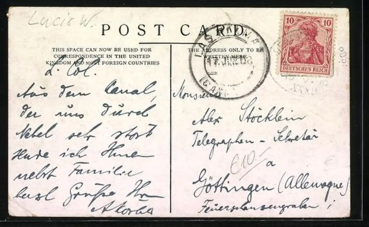 alte Ansichtskarte, gelaufen, Eckknick unten re., Stempelspur, guter Zustand