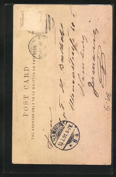 alte Ansichtskarte, gelaufen 1901, Briefmarke entfernt, rückseitig Oberflächenschaden, Eckknick li. unten, Stempelspur, guter Zustand