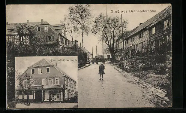 AK Drabenderhöhe, Strassenpartie mit Kirche, Gasthof Müllenbach